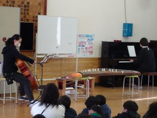 9日(月)全校児童が集まり、2階ホールで音楽鑑賞会を実施しました。