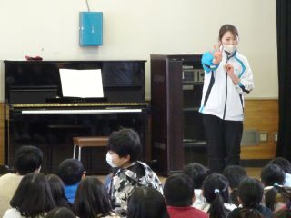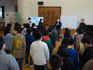 子供たちは、教頭先生のクイズにどんどん答えてい