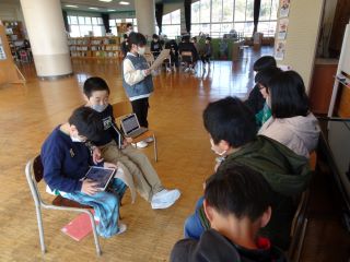 2月24日(火)3年生が4年生に総合的な学習で取り組んだ福祉についてまとめ、発表をしました。