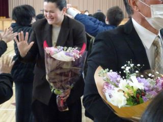 音楽主任と共演で復興支援ソング「花は咲く」の演奏