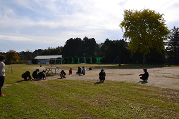 また、放送による避難訓練も行いました。放送をよく聞き、その場でしゃがみ、静かにいちょうの木まで避難することができました。