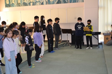 運動・集会委員会が司会をし、「児童会の歌」を歌った後、