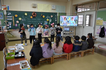 松島第五幼稚園の年長さんが来校し、1年生と交流しました。