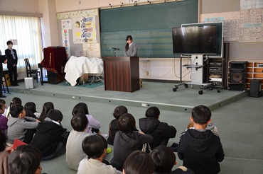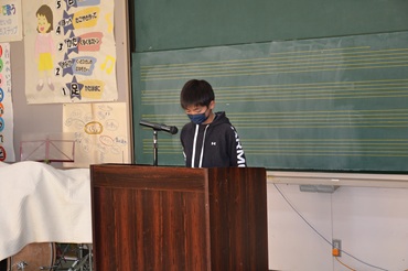 各学年の代表者が2学期頑張ったことや3学期頑張りたいことなどを発表しました。