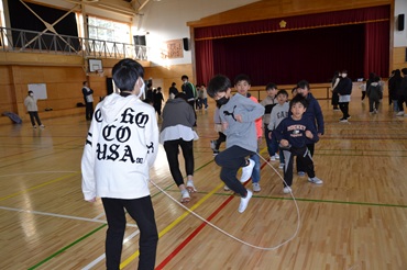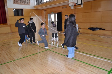 運動集会委員会が進行し、ルール説明などをしてから、大なわとびを行いました。