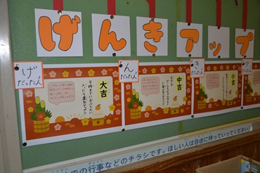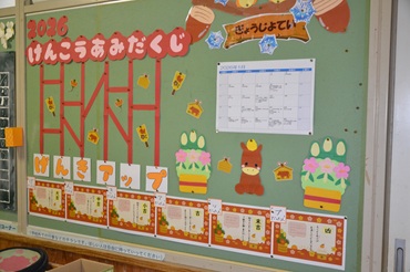 職員室前の廊下に、「けんこうあみだくじ」が掲示してあります。