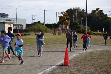 火曜日と木曜日は「業間マラソン」を行っています。音楽が鳴っている間、校庭を走り続ける子供たち。土曜日の駅伝大会に向けて、全員がベストを尽くせるように頑張っています。