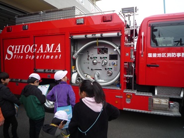 消防士さんの服も着させていただき、放水体験もすることができました。