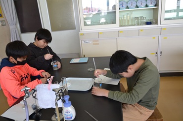 5年生が理科の「物のとけ方」の学習で実験を行いました。
