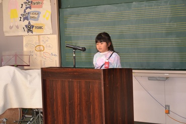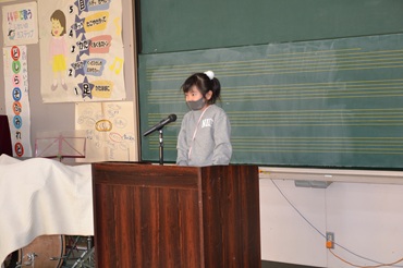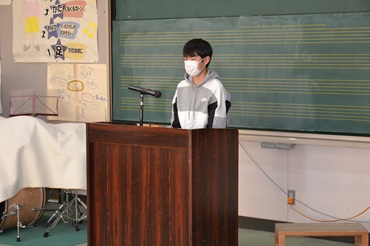 各学年の代表者が2学期頑張ったことや3学期頑張りたいことなどを発表しました。