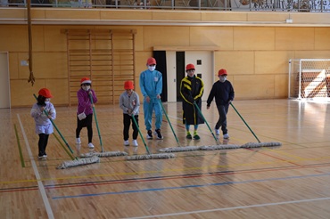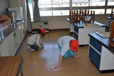 上学年が下学年に掃除の仕方を教えながら一緒に掃除しました。