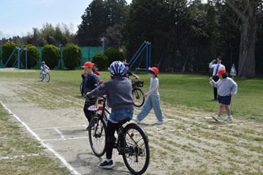 また、今日は交通安全教室がありました。駐在所の方や交通指導隊の方の話をしっかりと聞き、安全に横断歩道を渡ることができました。自転車に乗った児童も歩行者がいることを意識した運転や交差点の渡り方の学習を行いました。