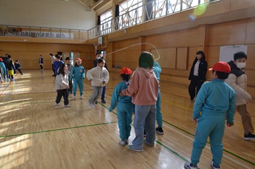 3学期も業間休みの時間に、たてわり大なわとびを行っています。