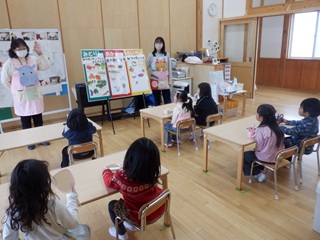 りす・うさぎ組は、給食を作ってくれる給食センターの方々に
