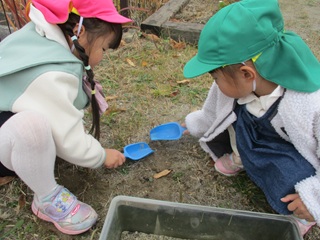 1学期から大切に飼育していたダンゴムシさんにお墓をつくってあげていました