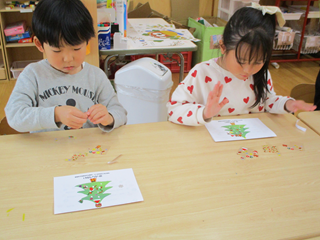 クラスでは、みんなで収穫したサツマイモの製作を行いました