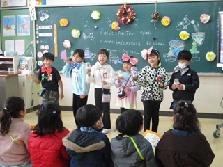 学校探検の後は、ミニミニどんぐりフェステイバルで1年生の