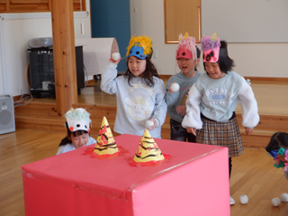 「鬼を倒したぞ~!!」と大喜びの子どもたち