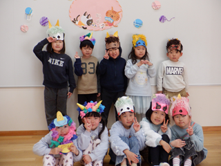 各クラス、作ったお面と自分の中にいる「追い出したい鬼」について
