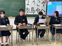 本日は新入生歓迎会を行いました。生徒会が企画・運営を担当し、松島中の生活について説明をしました。部活動紹介では、2.3年生が日頃の練習の様子などについて、真剣に発表する姿が見られました。新入生の皆さんは時々歓声や拍手を交えながら、先輩方の活動の様子を真剣に見ていました。