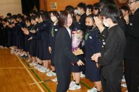 修了証が手渡され、生徒全員、一年間の努力の証である修了証を手にすることができました。各学年代表も今年一年を振り返り、新年度に向けての抱負を堂々と発表しました。また、各コンクール等で活躍した生徒にいただいた賞状を、たくさんの生徒に授与することができました。