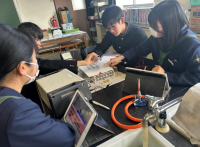 2年生、理科と保健体育の授業の様子です。理科では、「電流による磁界の観察」の実験を協力して行いました。