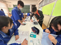 2年生家庭科と保健体育の授業です。家庭科では小物入れの仕上げを丁寧に行っていました。